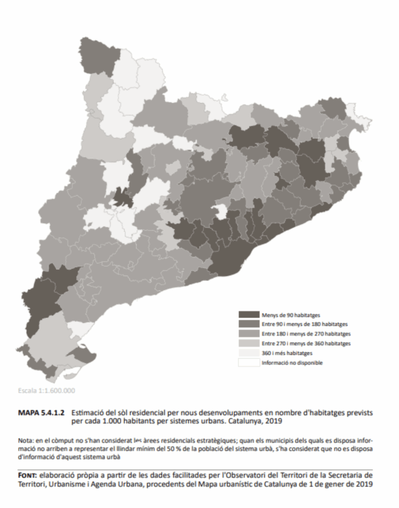 Tot i estimar un potencial de 678.000 habitatges a tot Catalunya, l’Àmbit Metropolità només hi ha capacitat per a 34 habitatges nous per cada 1.000 habitants, una proporció relativament baixa en comparació amb altres zones. Si això es contrasta amb un increment previst de més de més de 309.000 llars entre 2023 i 2042,aflora una diferència d’uns 140.000 habitatges que exigeix posar al dia el planejament desactualitzat, augmentar el múscul de promoció pública, privada i comunitària, i millorar la governança metropolitana per evitar més dispersió urbana (sprawl), més dependència del vehicle privat i més emissions.